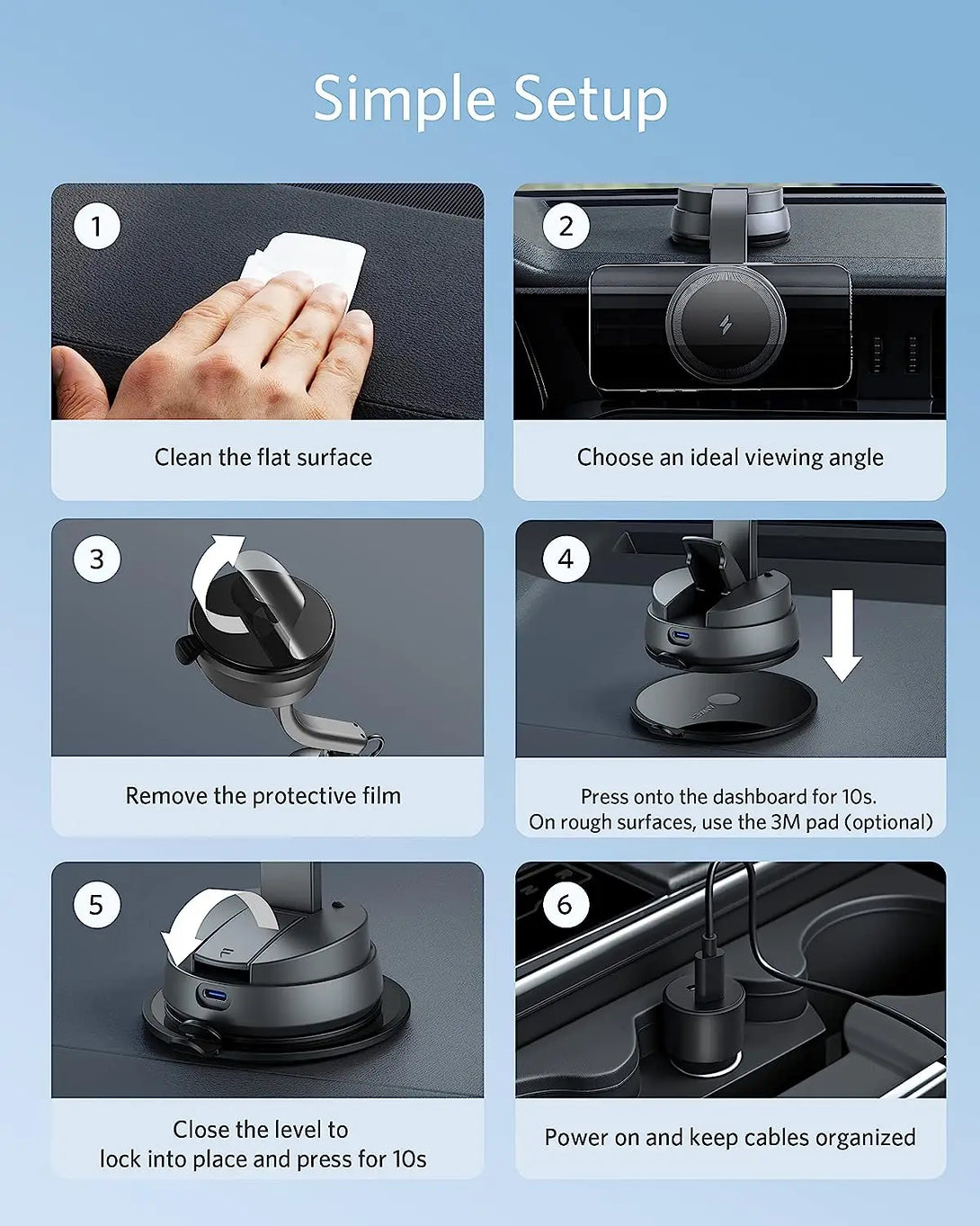 - حامل بيد واحدة: ادخل، وقم بالتثبيت، وانطلق باستخدام حامل مغناطيسي يتيح لك وضع جهازك في مكانه دون إبطائك.
