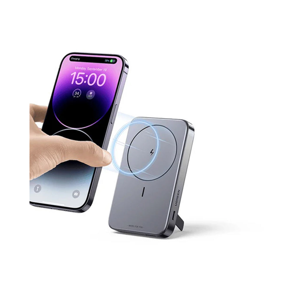 Stay powered up on the go with the UGREEN PB206 Magnetic Wireless Power Bank, designed for convenience, speed, and style. With a sleek Space Grey finish, 10000mAh capacity, and MagSafe-compatible magnetic wireless charging, it's the perfect companion for your iPhone and other devices.