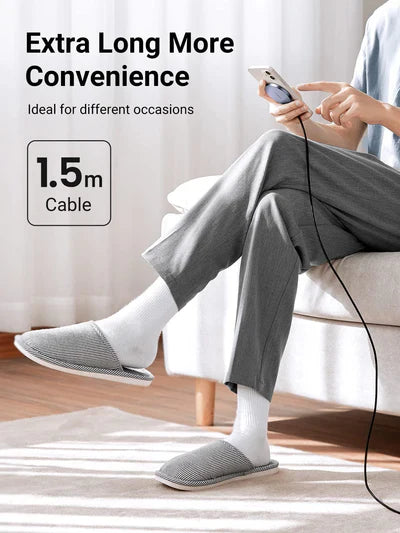 كابل USB C مدمج بطول 1.5 متر، مزود بشاحن PD يمكنه توفير مدخل طاقة أسرع وأكثر استقرارًا للجهاز، وشحنه بكفاءة عالية. (ملاحظة: لا يتضمن مقبس طاقة USB C)