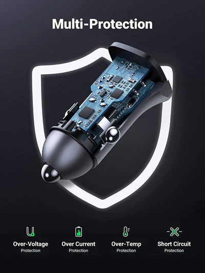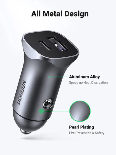 يوفر الهيكل المصنوع من الألومنيوم مظهرًا أنيقًا ويساعد أيضًا في إطالة عمر شاحن السيارة هذا، كما يمكنه المساهمة في سلامتك أثناء الشحن، حيث تعمل مادة الألومنيوم على تبديد الحرارة.