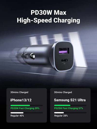 محول شحن سريع للسيارة بقوة 30 وات USB A وUSB C