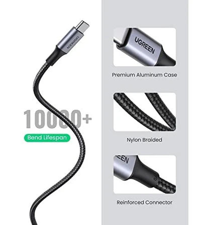 - يتوافق كابل الشحن UGREEN USB-c مع معيار USB 3.1 Gen 2 ويوفر مزامنة عالية السرعة بحد أقصى 10 جيجابت في الثانية، ونقل أفلام عالية الدقة أو ملفات كبيرة في ثوانٍ فقط