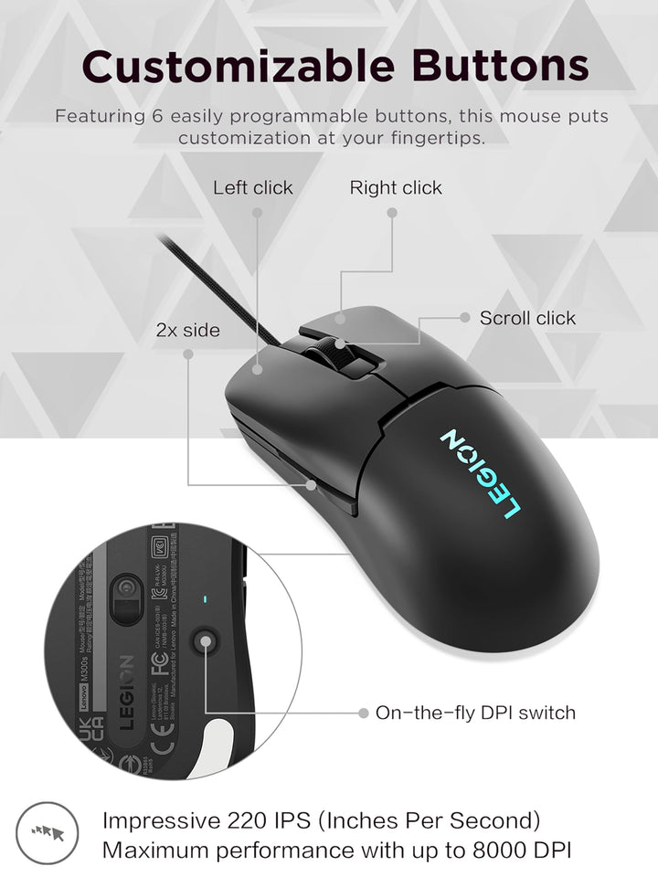 Lenovo Legion M300s RGB Gaming Mouse, Up to 8000 DPI, 6 Programmable Buttons, RGB 16.8 Million Colors