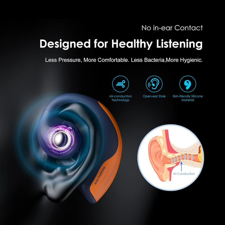 - Natural Comfort-Feel Free to Wear- OpenPods will not cover or stick in the ears to make you feel uncomfortable, and superior air conduction technology avoids the discomfort of vibrations caused by bone conductive drivers. Lightweight design and skin-friendly silicone make you feel no pain on ears.