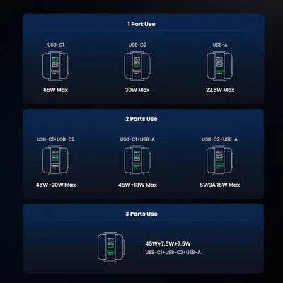 | USB-C1 Output | 5.0V~ 3.0A / 9.0V~ 3.0A / 12.0V~ 3.0A / 15.0V~ 3.0A / 20.0V~ 2.25A,65W Max |